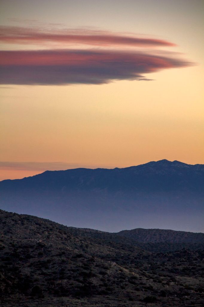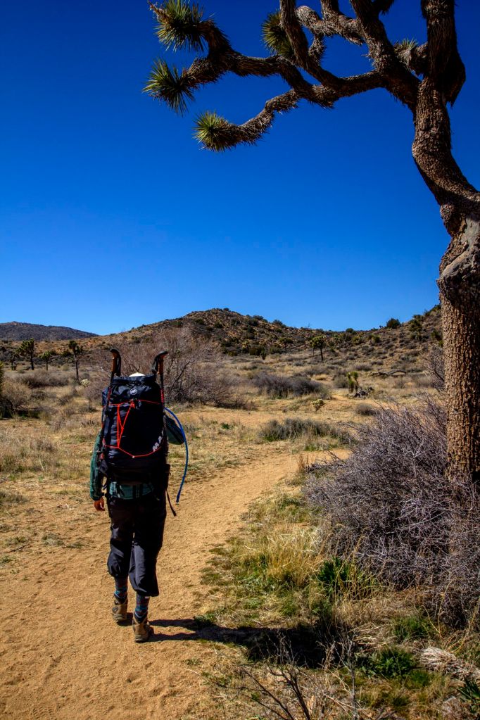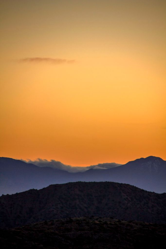 Moving forward Jessica and I worked one more week and patiently waited for our upcoming trip. We planned to go to Joshua Tree National Park in Southern California and backpack into Johnny Lang Canyon. We arrived in town after work right after sunset and ate Thai Food in Twentynine Palms before checking into our Air BnB. One on the trail, this canyon is predominantly straightforward, but one could easily become discombobulated. We started on the California Riding and Biking Trail from Juniper Flats Trailhead. Approximately a mile in, we then branched off onto a cross-country route that headed towards Johnny Lang Canyon, and we would soon spend the night. After finding our way to the proper entry of the canyon we began our walk into the Canyon. After some time we pitched camp and made our way toward Quail Mountain for sunset. We did not make the Summit this trip but had ourselves a beautiful perch on the ridge of Mount Minerva Hoyt. Jessica and I took some photographs together and made our way back to camp only needing to turn on our headlamps once almost back to our tent.