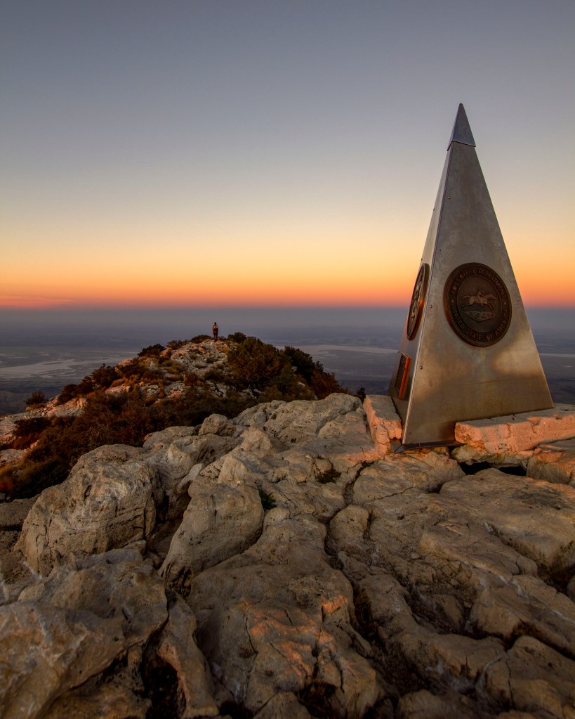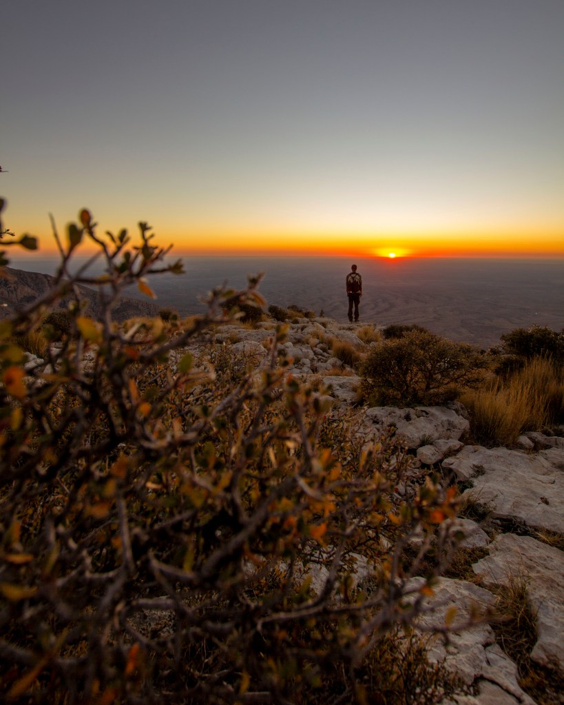 Jess tried some of the freeze-dried deliciousness and was blown away! We soon went to sleep listening to the quet of the Chiuanian Desert. The next morning Jess wanted to sleep in, so I headed to the summit of Guadolupe Peak for snrise. The air had a perfect chill to it, the sun slowly illuminating the landscaoe around me. I made it to the summit just in time for the rays to break over the horizon line and the forever stretching landscape. I took some time to photographg the moment and took it all in. I had the summit to my self but I wished Jess had gotten up to epxeriance such a beautiful moment. One that I have become hyupotized by and avidly chase as oftgen as possible. Once I had taken it all in, I walked back to camp. When I arrived Jess was already packing camp. The sun was up and the landscape was warming up. She smiled and after some breakfastv we headed back down the mountain. passing some groups of people and even coming acrossed a freshly dirtied pair of exercise pants someone had disrpecefully discared on the side of the trail.