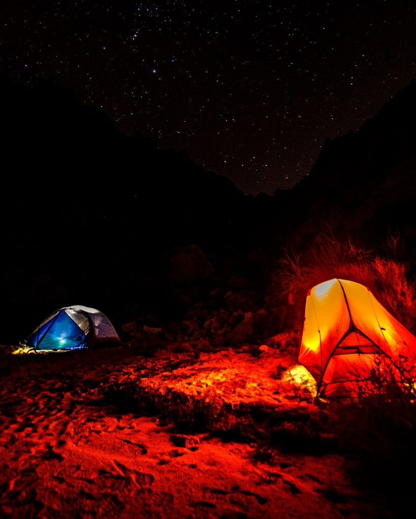 After setting up our home for the night and cooling down from the hot sun a bit, the group of us set our sites on Spectre Peak. We went up a side canyon from camp and began climbing class 3 terrain as we pushed for the Ridgeline. Our views became more and more expensive and inspiring! The heat had taken a beating on Nick as he was acclimated to the cold of a high Sierra Winter. We made a team decision to turn around and enjoy the evening from camp when Nick shared that he felt very out of it. Once I was back at camp, I gave more salt sticks to Nick and a wet shirt to tie around his head. He lay in the shade next to our tents and after some dinner, he started to recover. Soon the sun fell low and sunset photographs were our new mission! Nick went to sleep pretty early due to his not feeling too good and Justin and I stayed up to admire the Dark Sky Park night skies a bit. I sent Jess a goodnight text on my Garmin Inreact that I loved her and I was off to bed myself.