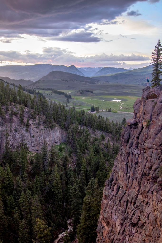 By the time I am writing this story down 6 years have passed. During this adventure, I worked at the Historical Roosevelt Lodge in Yellowstone National Park. My home outside of my car was a Log Cabin… I was only 60 seconds walking from the Kitchen I worked in, and most mornings, I was one of the first people awake. The sunrise was a perk that came with the job! A perk that many National Park jobs quietly offer I have found out. I had flown here and was saving for a new vehicle. With this said I was bound by the kindness of other people and the ability to walk places. One of the adventures I experienced here was a short hike behind Roosevelt Lodge with views that are etched into my memory. A Cliff Band that was locally known as the “Poison Cliffs”. On a map, no such geographical features are known of and this is another beautiful example of “local knowledge”. I went up to this vista many evenings in Yellowstone for sunset. Looking over Paradise Valley towards Hellroaring Mountain and farther to the Gallatin National Forest. If I looked close, almost right below me one could see our home… A small cozy little plot of cabins and a lodge.