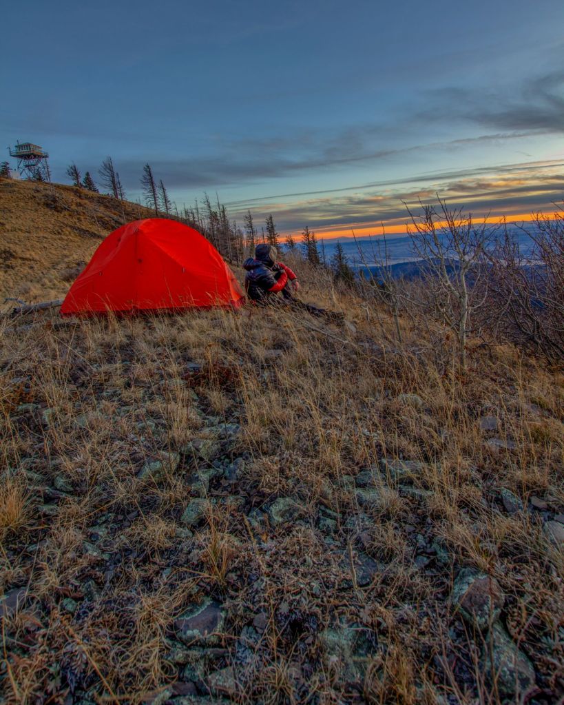 I soon decided to pitch my tent on a peak on the saddle of the Mogollon Baldy. The Mogollon Crest Trail runs next to my camp and directly to the summit. I was enamored by the feelings of solitude God let the Gila Wilderness bring me. I ate dinner and photographed the Sunset. The silence and desolation of this place speak to a God who could create something so impactful and beautiful. The views of the land below and the Ranges far speak to the reflections and lessons possible here… The Mogollon Range, desolate and inspiring…. Teaching mankind that God is who made this Wild Land, a place to reflect who he is and whom he wants us to be. A Mountainous Wild that allows us peace when we worship here.